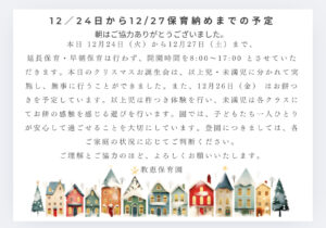 令和8年1月のおたより(園だより・各クラスだより)を掲載しました。